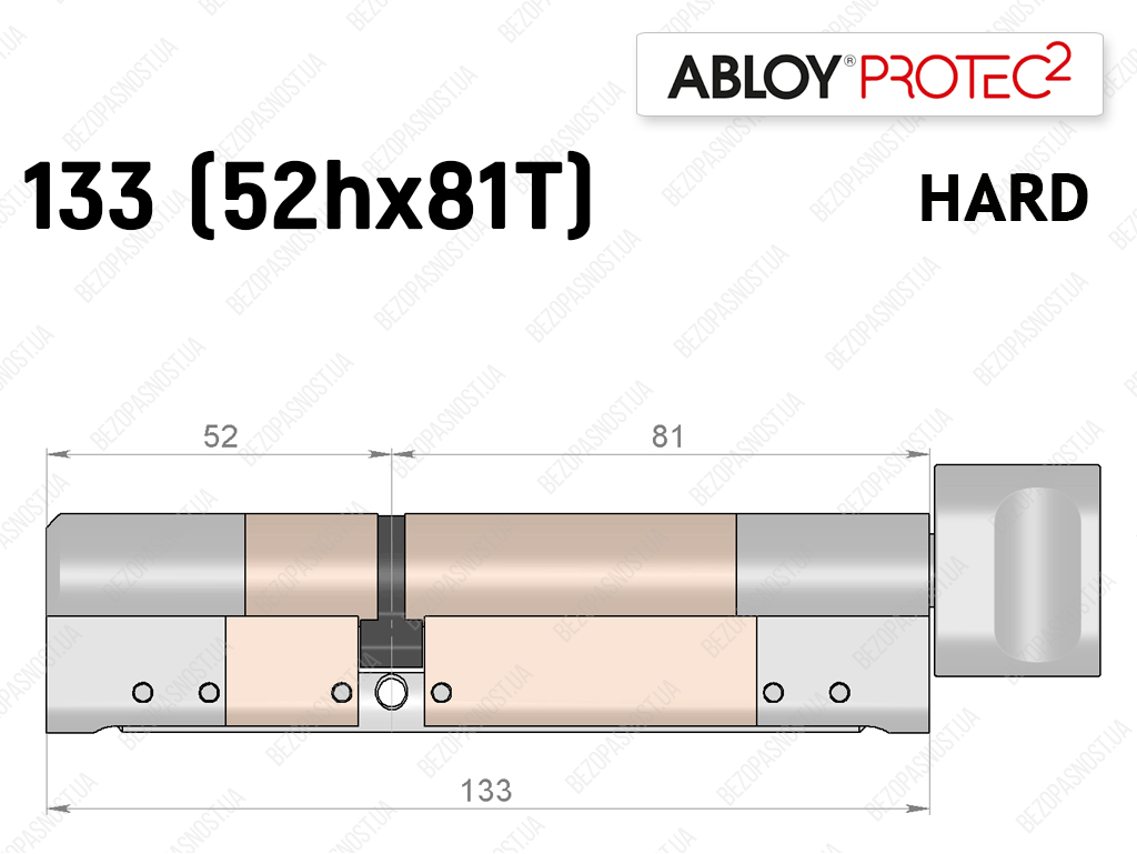 Цилиндр ABLOY PROTEC-2 HARD 133 мм (52Hx81T), с тумблером