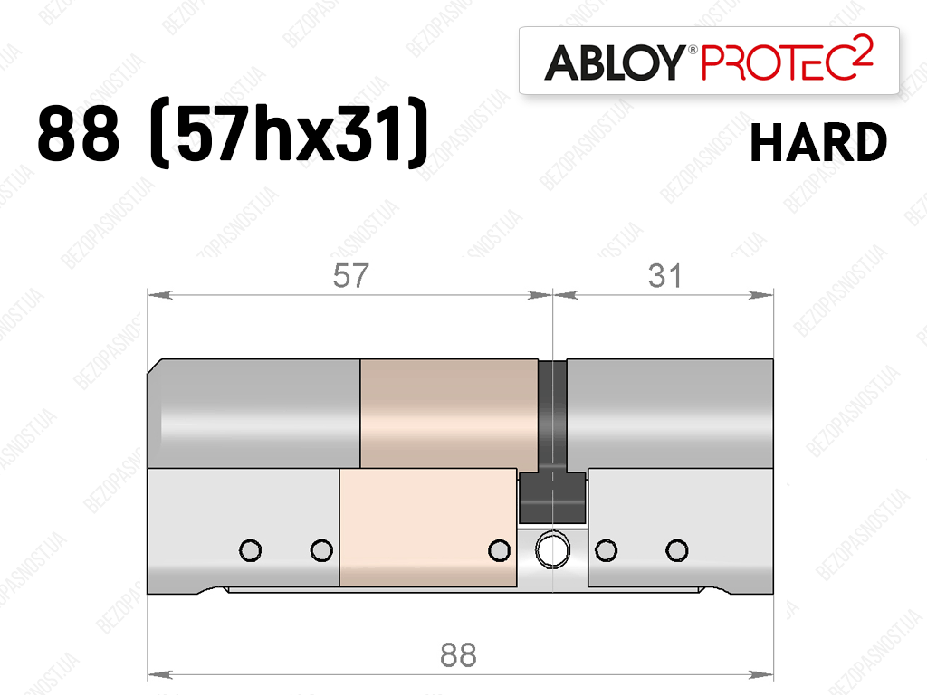 Цилиндр ABLOY PROTEC-2 HARD 88 мм (57Hx31), ключ-ключ