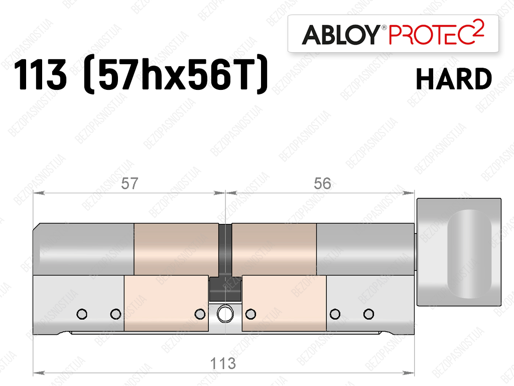 Циліндр ABLOY PROTEC-2 HARD 113 мм (57Hx56T), з тумблером
