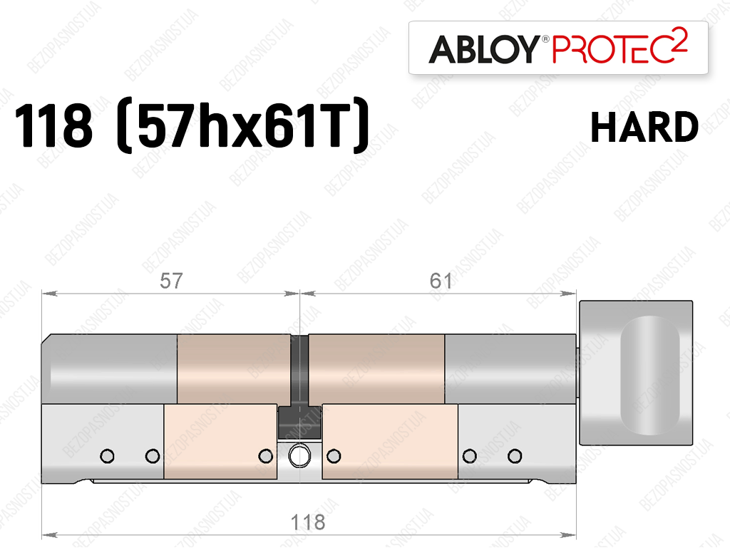 Цилиндр ABLOY PROTEC-2 HARD 118 мм (57Hx61T), с тумблером