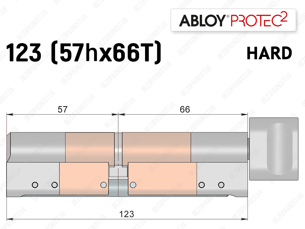 Цилиндр ABLOY PROTEC-2 HARD 123 мм (57Hx66T), с тумблером