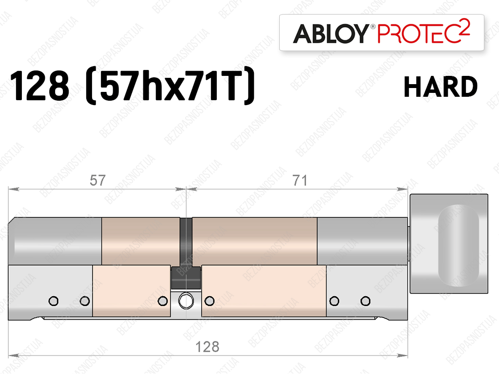 Цилиндр ABLOY PROTEC-2 HARD 128 мм (57Hx71T), с тумблером
