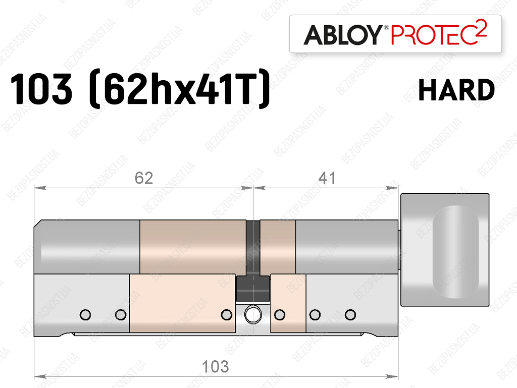 Цилиндр ABLOY PROTEC-2 HARD 103 мм (62Hx41T), с тумблером