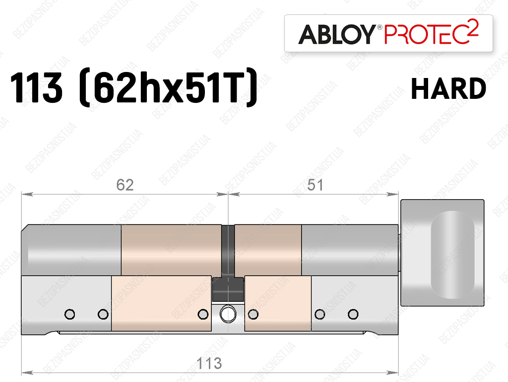 Цилиндр ABLOY PROTEC-2 HARD 113 мм (62Hx51T), с тумблером