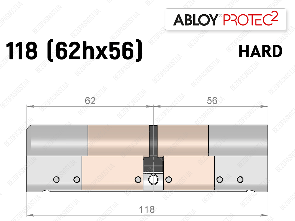 Циліндр ABLOY PROTEC-2 HARD 118 мм (62Hx56), ключ-ключ