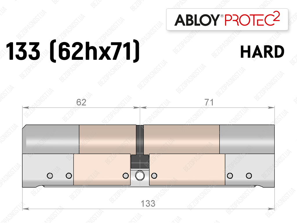 Цилиндр ABLOY PROTEC-2 HARD 133 мм (62Hx71), ключ-ключ