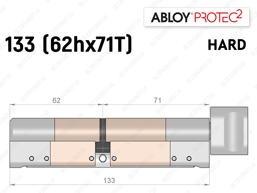 Цилиндр ABLOY PROTEC-2 HARD 133 мм (62Hx71T), с тумблером