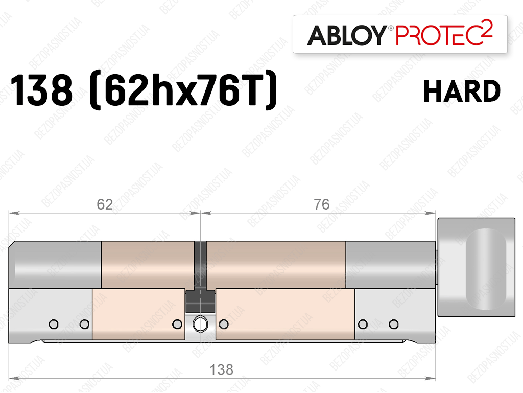 Цилиндр ABLOY PROTEC-2 HARD 138 мм (62Hx76T), с тумблером