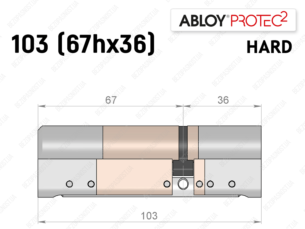 Цилиндр ABLOY PROTEC-2 HARD 103 мм (67Hx36), ключ-ключ