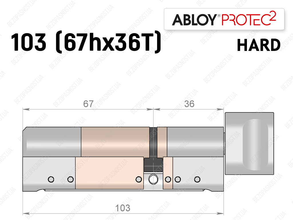 Цилиндр ABLOY PROTEC-2 HARD 103 мм (67Hx36T), с тумблером