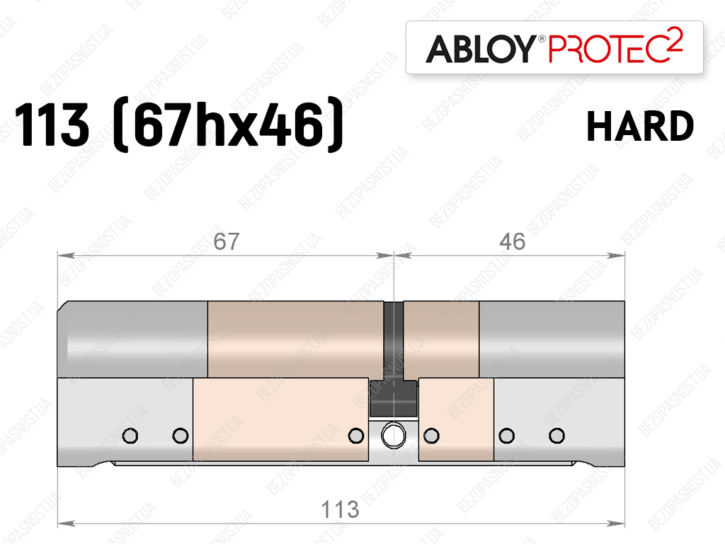 Циліндр ABLOY PROTEC-2 HARD 113 мм (67Hx46), ключ-ключ