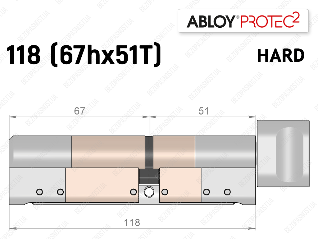 Цилиндр ABLOY PROTEC-2 HARD 118 мм (67Hx51T), с тумблером