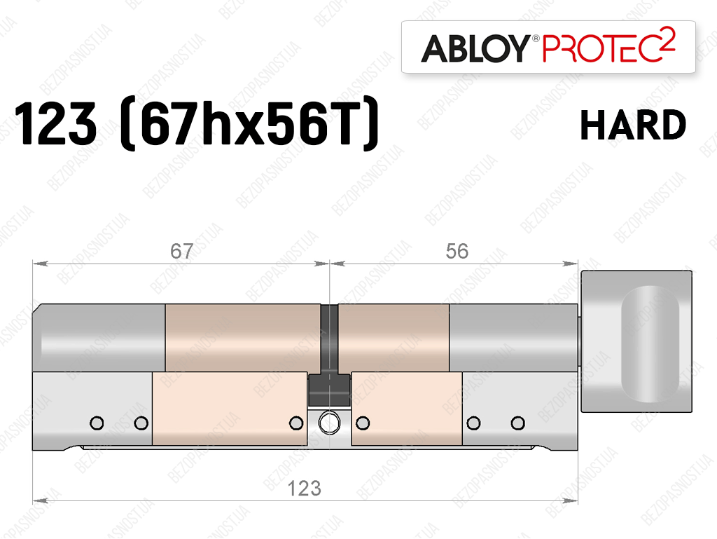 Циліндр ABLOY PROTEC-2 HARD 123 мм (67Hx56T), з тумблером