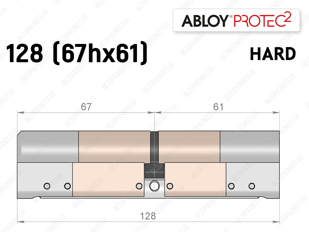 Цилиндр ABLOY PROTEC-2 HARD 128 мм (67Hx61), ключ-ключ