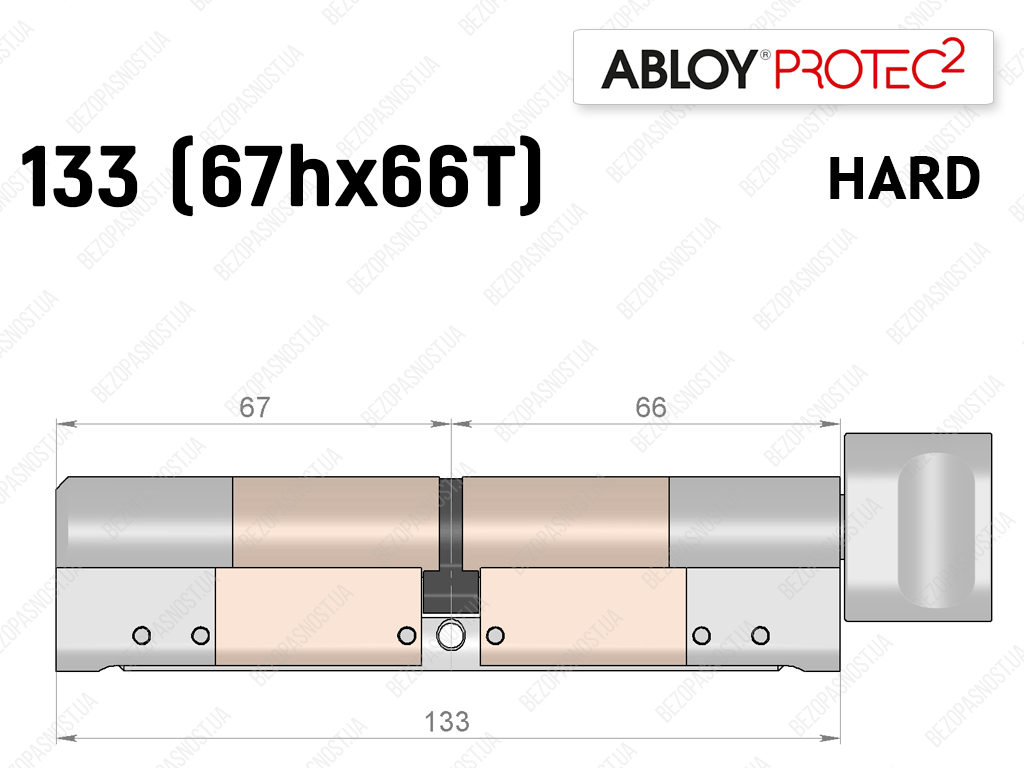 Цилиндр ABLOY PROTEC-2 HARD 133 мм (67Hx66T), с тумблером