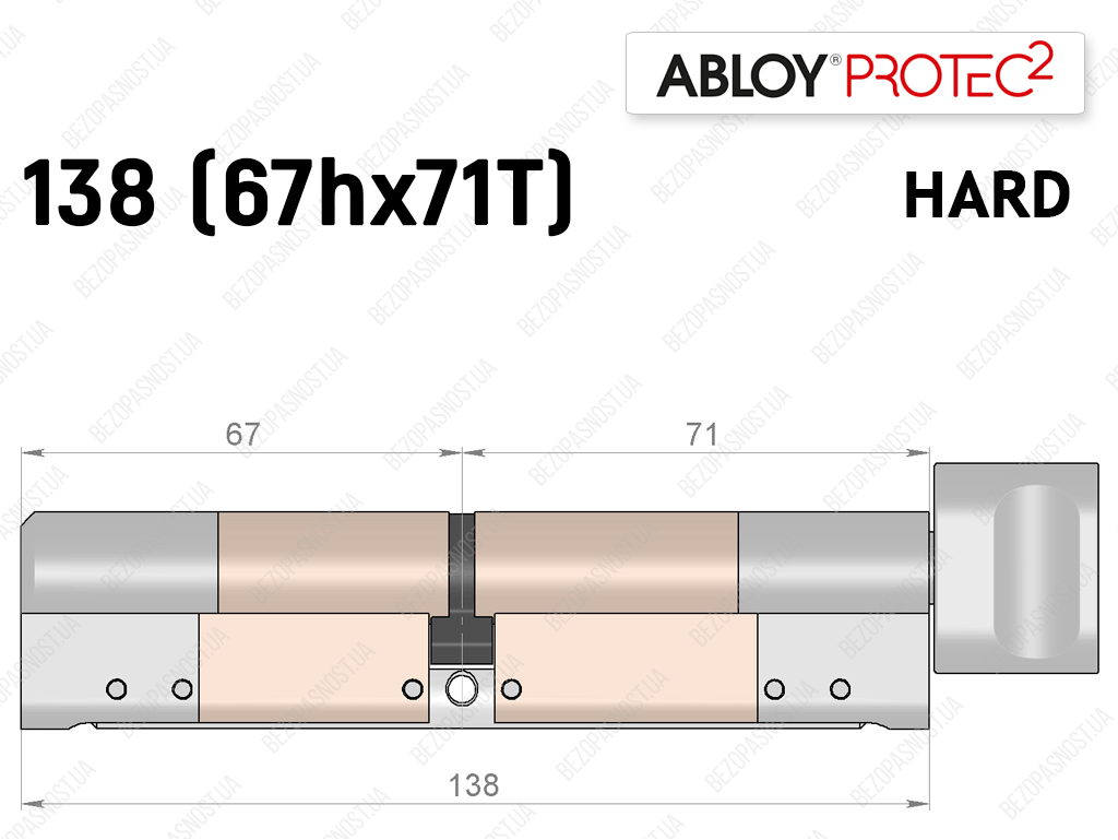 Цилиндр ABLOY PROTEC-2 HARD 138 мм (67Hx71T), с тумблером