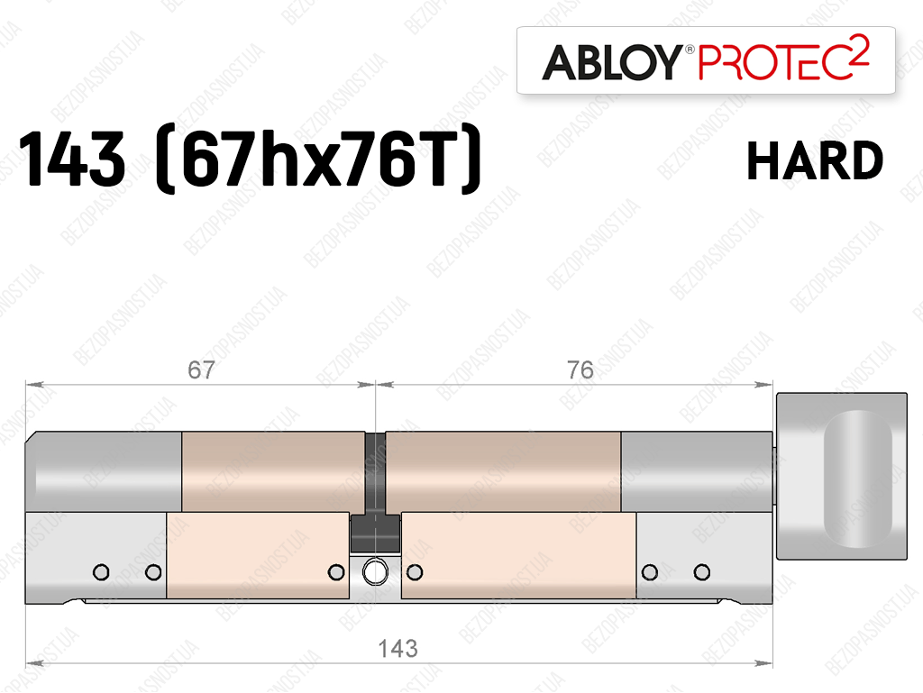 Циліндр ABLOY PROTEC-2 HARD 143 мм (67Hx76T), з тумблером