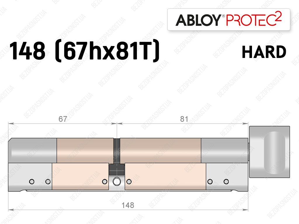 Цилиндр ABLOY PROTEC-2 HARD 148 мм (67Hx81T), с тумблером
