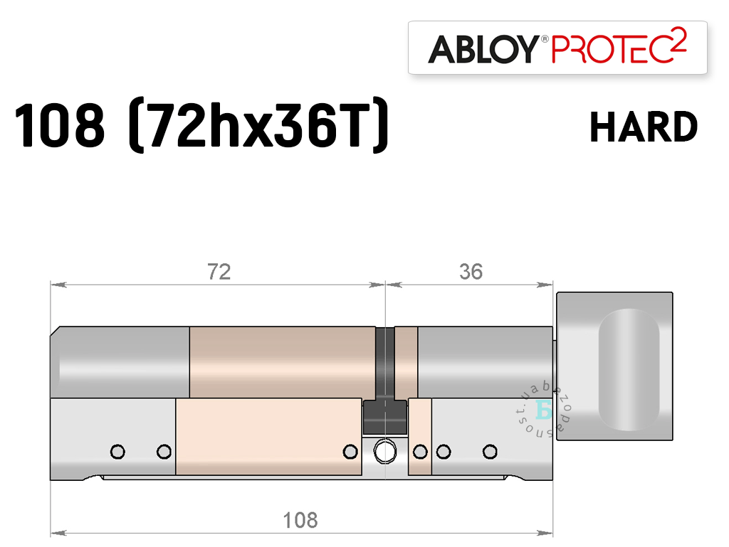 Цилиндр ABLOY PROTEC-2 HARD 108 мм (72Hx36T), с тумблером