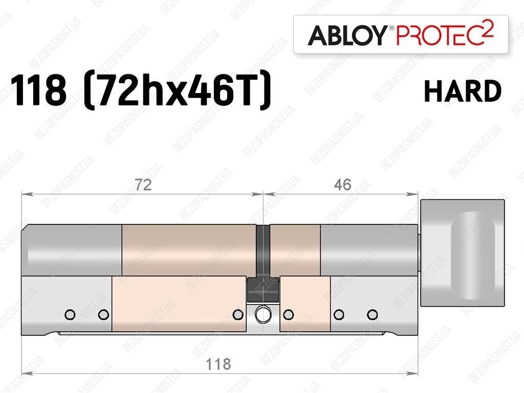Цилиндр ABLOY PROTEC-2 HARD 118 мм (72Hx46T), с тумблером