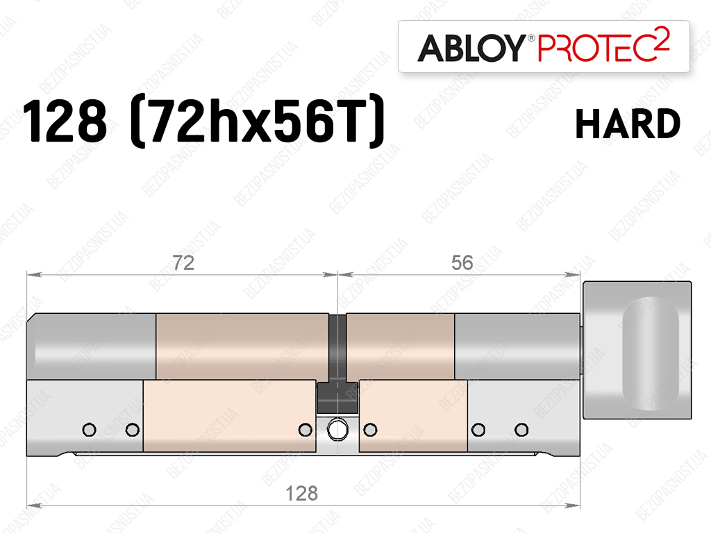 Цилиндр ABLOY PROTEC-2 HARD 128 мм (72Hx56T), с тумблером
