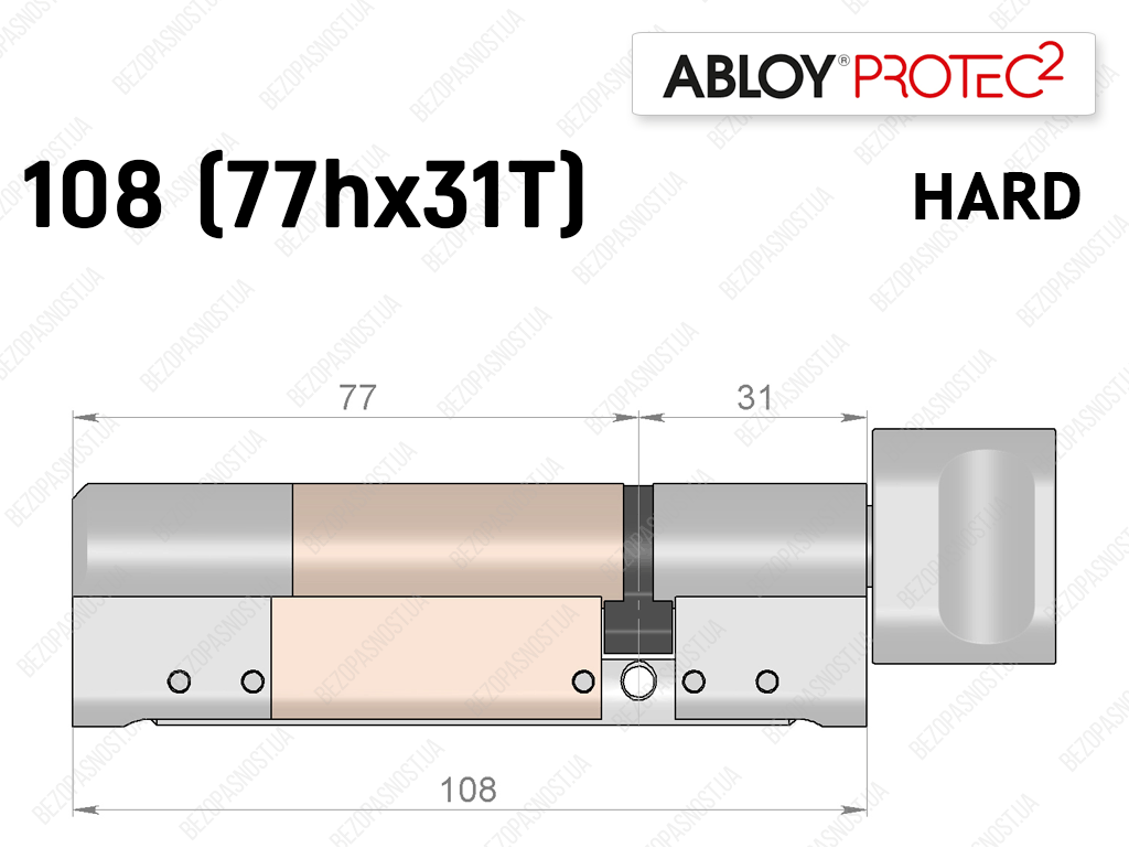 Циліндр ABLOY PROTEC-2 HARD 108 мм (77Hx31T), з тумблером