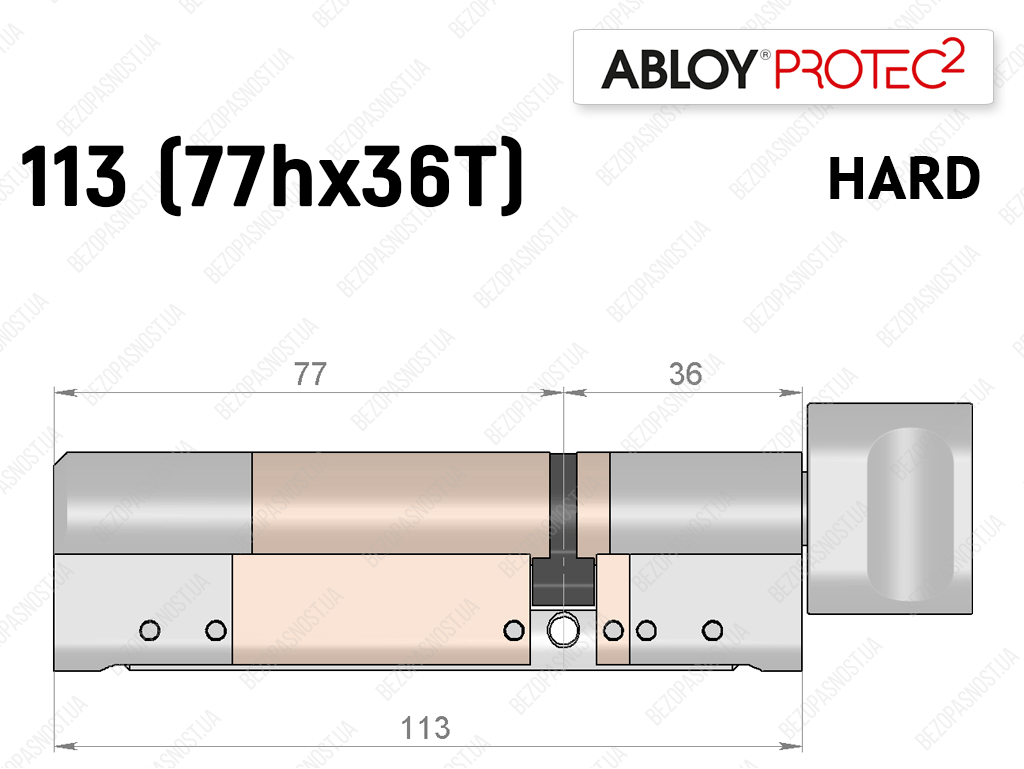 Циліндр ABLOY PROTEC-2 HARD 113 мм (77Hx36T), з тумблером
