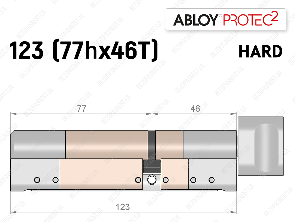 Циліндр ABLOY PROTEC-2 HARD 123 мм (77Hx46T), з тумблером