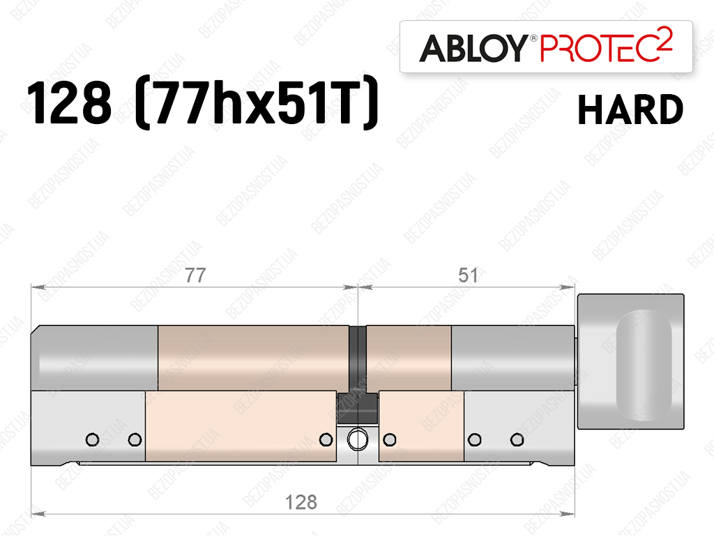 Цилиндр ABLOY PROTEC-2 HARD 128 мм (77Hx51T), с тумблером