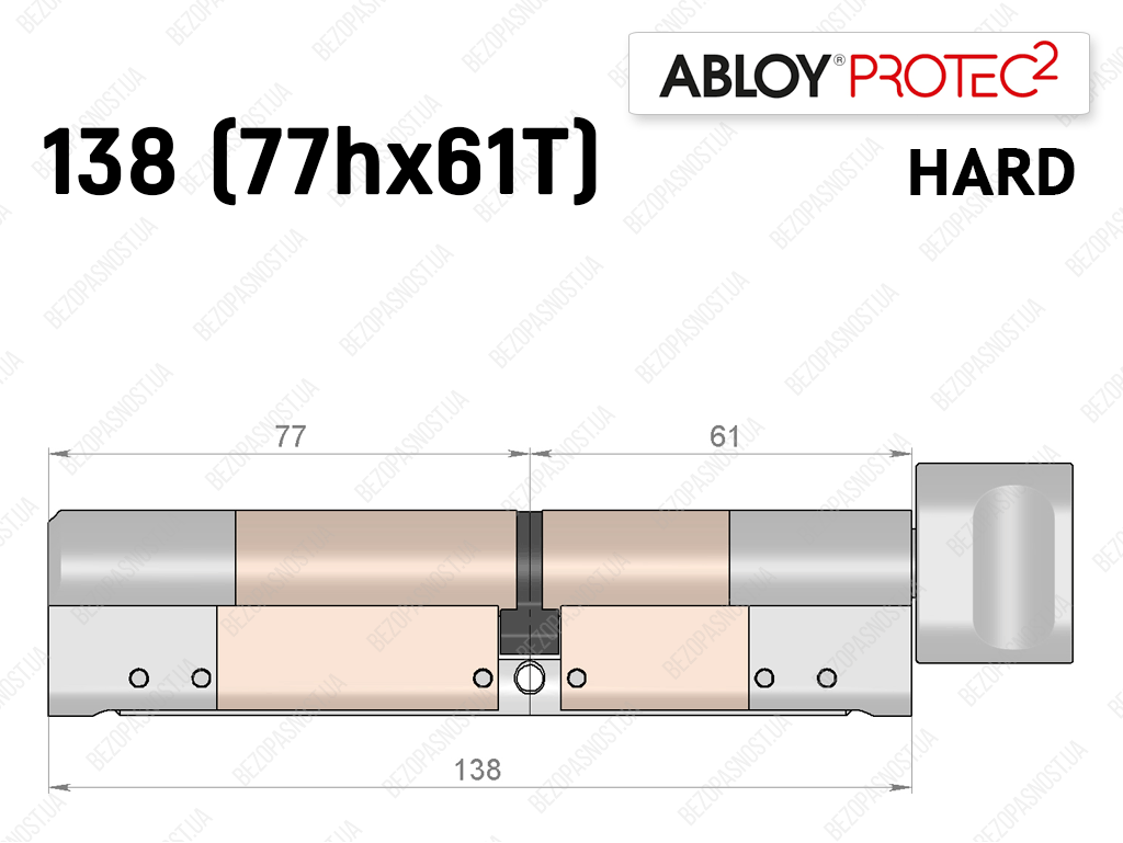 Цилиндр ABLOY PROTEC-2 HARD 138 мм (77Hx61T), с тумблером