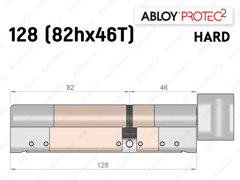 Цилиндр ABLOY PROTEC-2 HARD 128 мм (82Hx46T), с тумблером