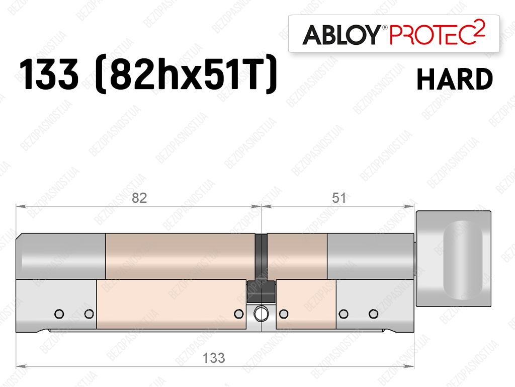 Цилиндр ABLOY PROTEC-2 HARD 133 мм (82Hx51), ключ-ключ
