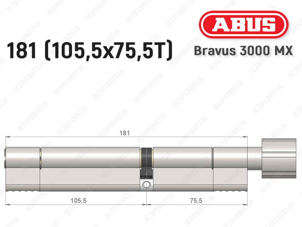 Цилиндр ABUS BRAVUS 3000 MX, ключ-тумблер, 180 мм (105х75T)