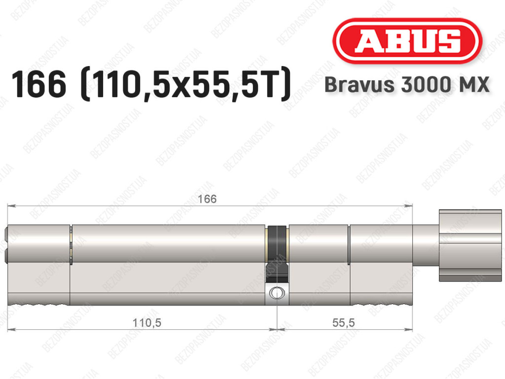 Цилиндр ABUS BRAVUS 3000 MX, ключ-тумблер, 165 мм (110х55T)