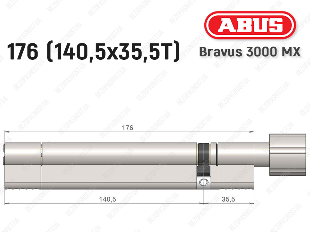 Цилиндр ABUS BRAVUS 3000 MX, ключ-тумблер, 175 мм (140х35T)