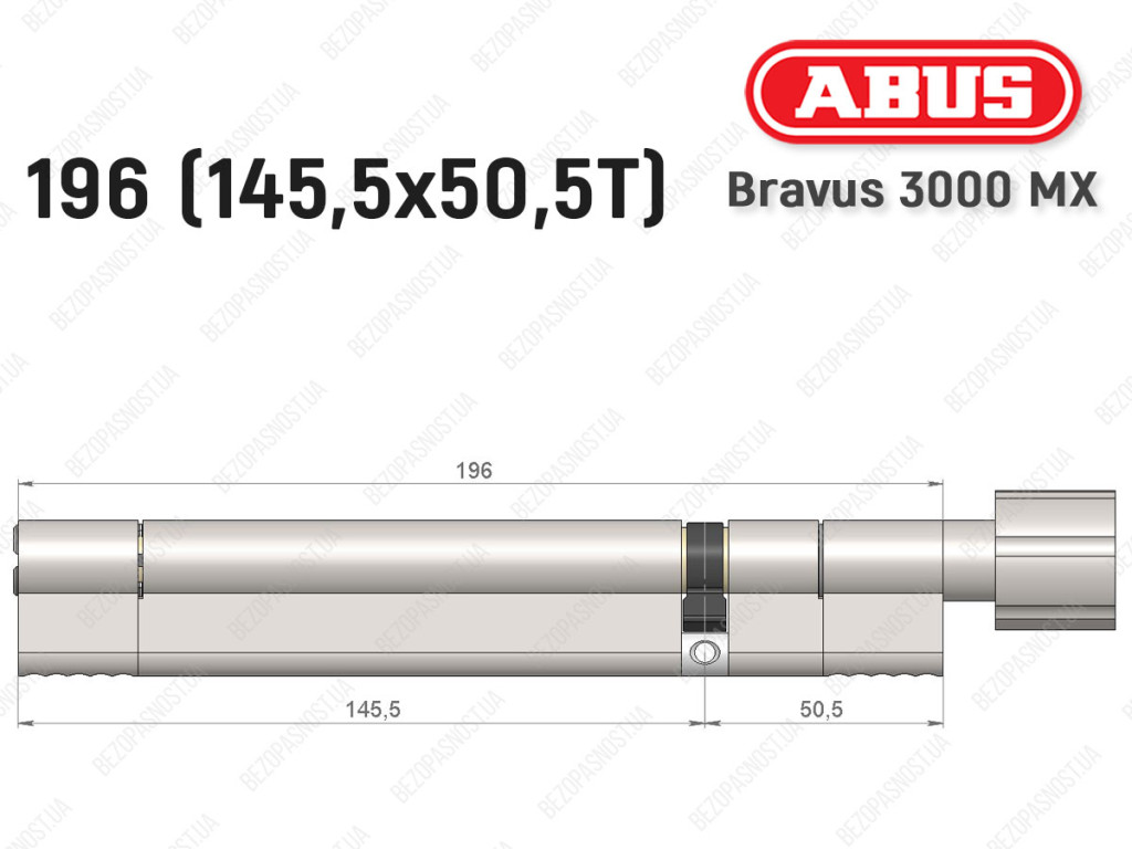 Цилиндр ABUS BRAVUS 3000 MX, ключ-тумблер, 195 мм (145х50T)