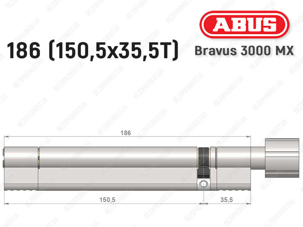 Цилиндр ABUS BRAVUS 3000 MX, ключ-тумблер, 185 мм (150х35T)