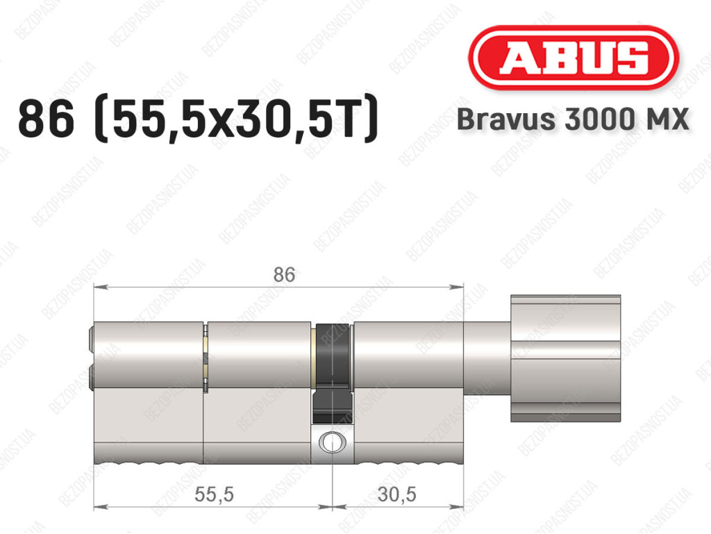 Цилиндр ABUS BRAVUS 3000 MX, ключ-тумблер, 85 мм (55х30T)
