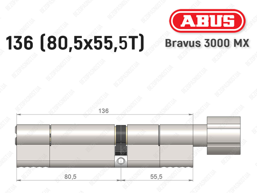 Цилиндр ABUS BRAVUS 3000 MX, ключ-тумблер, 135 мм (80х55T)