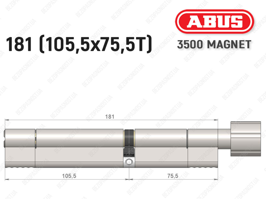 Цилиндр ABUS BRAVUS MAGNET 3500 MX, с тумблером, 180 мм (105х75T)