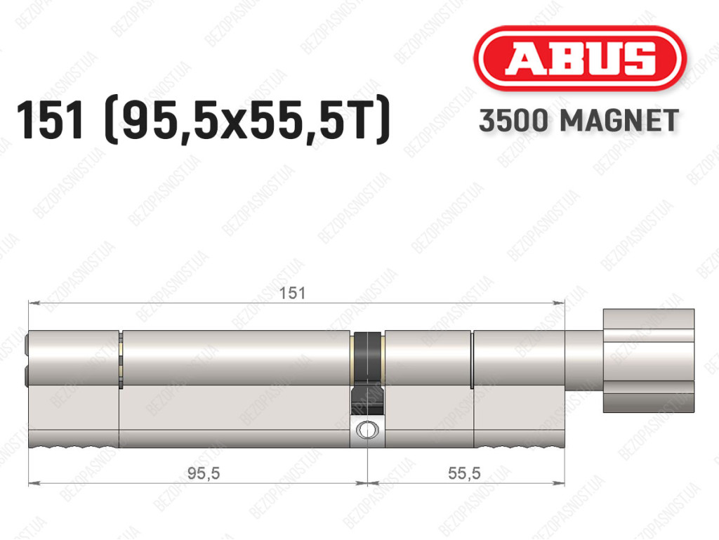 Циліндр ABUS BRAVUS MAGNET 3500 MX, з тумблером, 150 мм (95х55T)