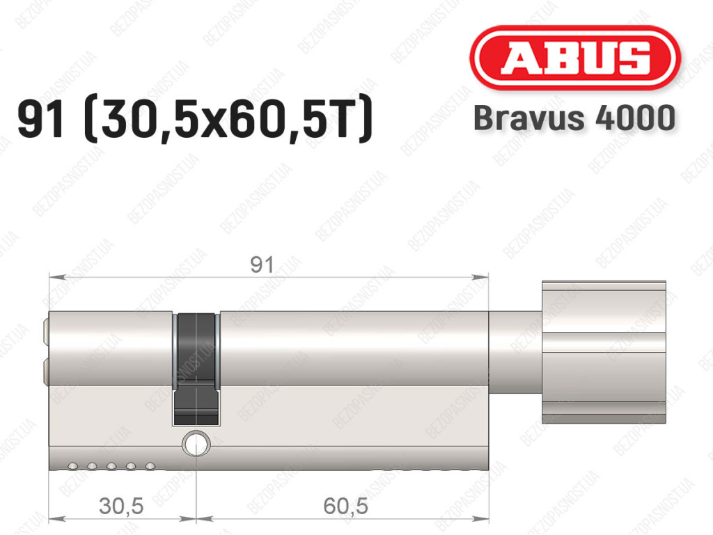 Цилиндр ABUS BRAVUS 4000 Compact, с тумблером, 90 мм (30х60Т)