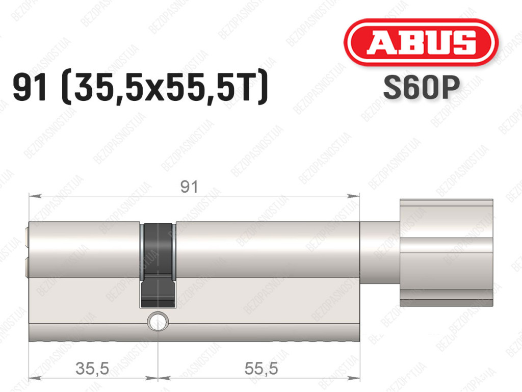 Цилиндр ABUS S60P Compact, с тумблером, 90 мм (35х55Т)