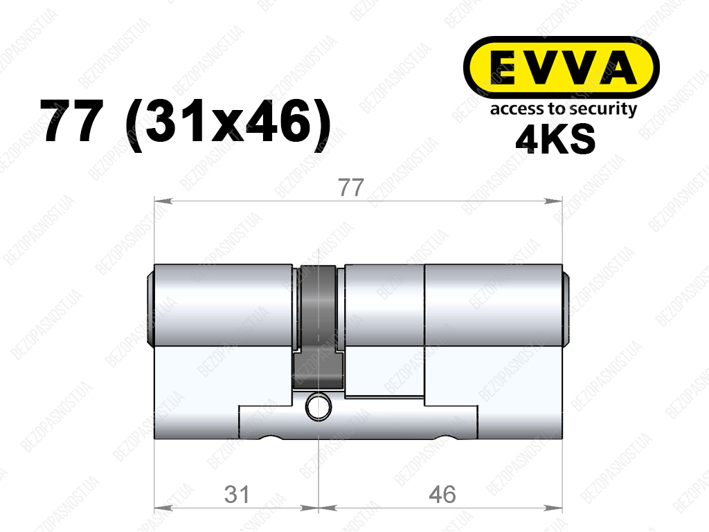 Цилиндр EVVA 4KS 77 мм (31x46), ключ-ключ