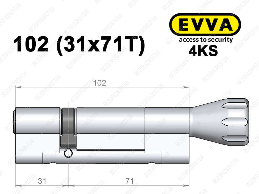 Цилиндр EVVA 4KS 102 мм (31x71T), с тумблером