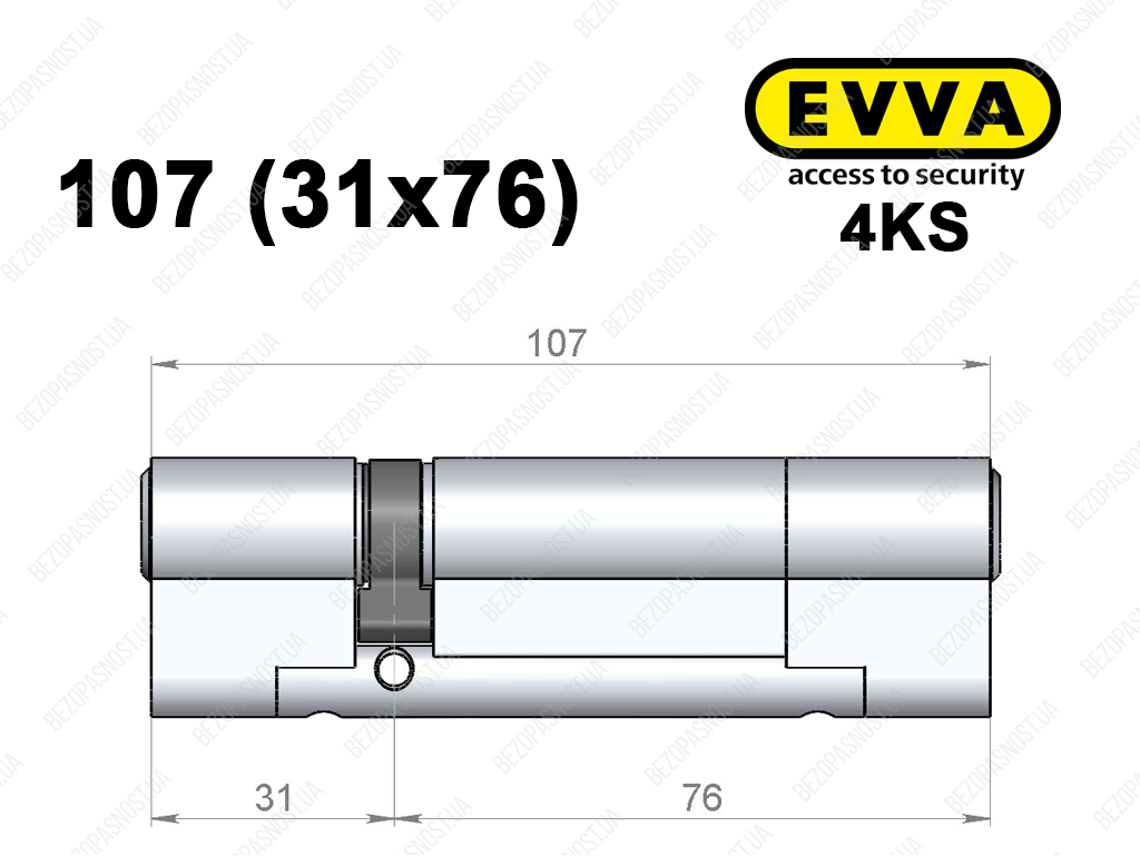 Цилиндр EVVA 4KS 107 мм (31x76), ключ-ключ