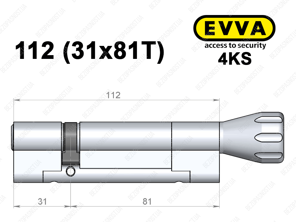 Цилиндр EVVA 4KS 112 мм (31x81T), с тумблером