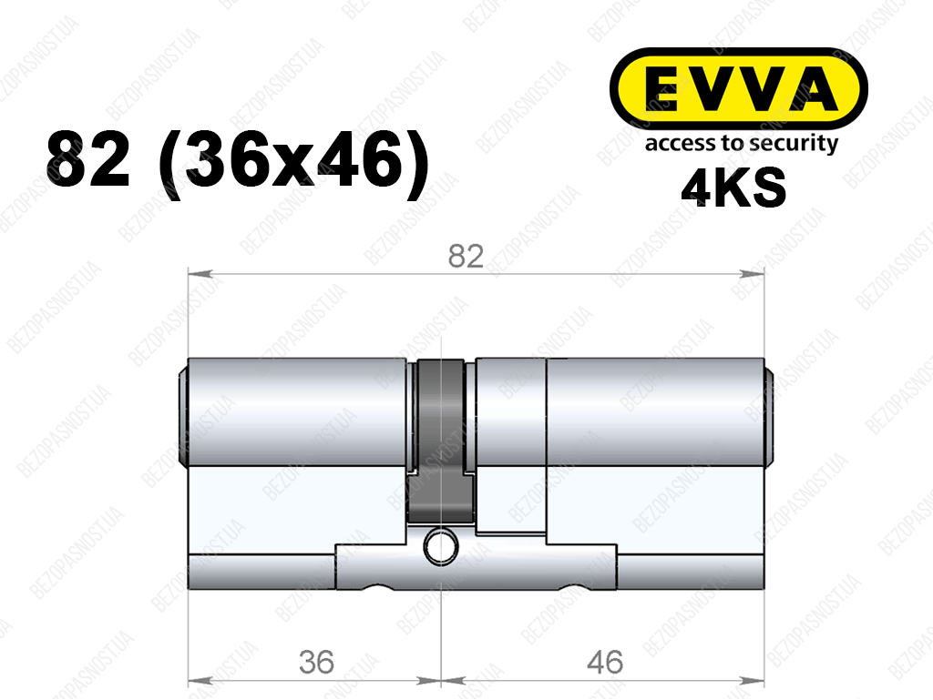 Цилиндр EVVA 4KS 82 мм (36x46), ключ-ключ