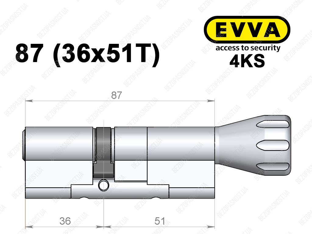 Цилиндр EVVA 4KS 87 мм (36x51T), с тумблером