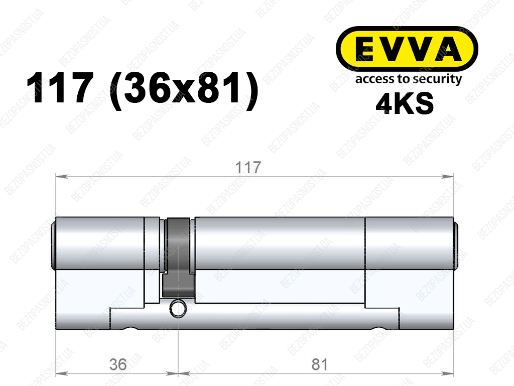 Циліндр EVVA 4KS 117 мм (36x81), ключ-ключ